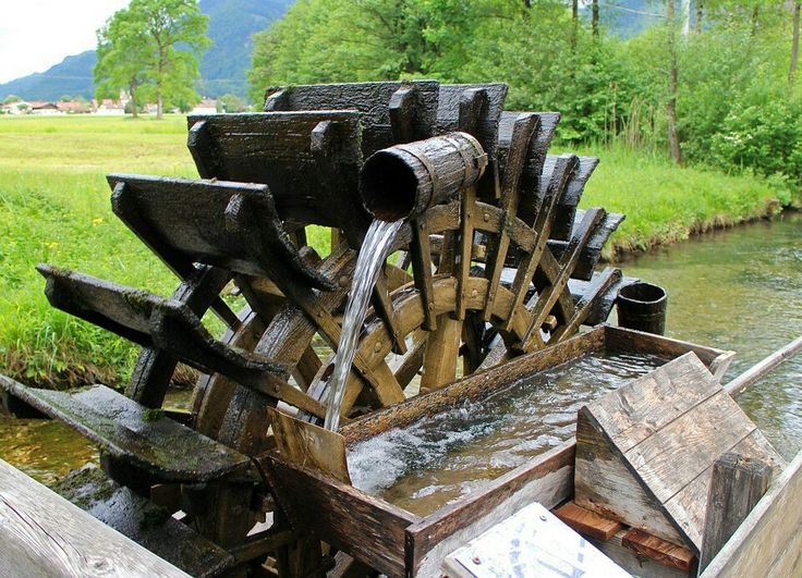 Это механизмы, использующие силу потока воды для создания энергии, вращающей колёса, мельницы, приводящей в движение насосы, прессы и другие устройства. Первые известные водяные колёса использовались еще в Древней Греции и Риме (III–I век до н.э.).
