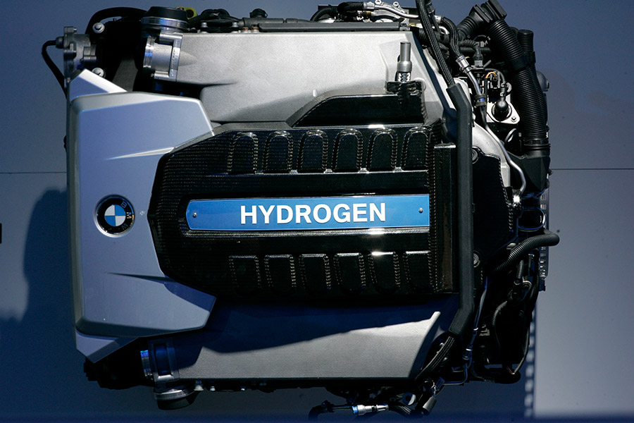 - Водородный двигатель — использует водород, который получают электролизом из воды.